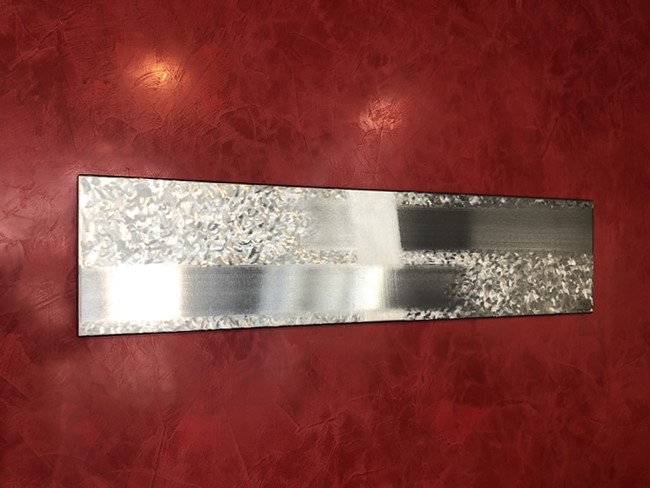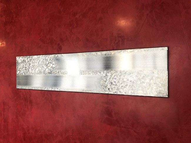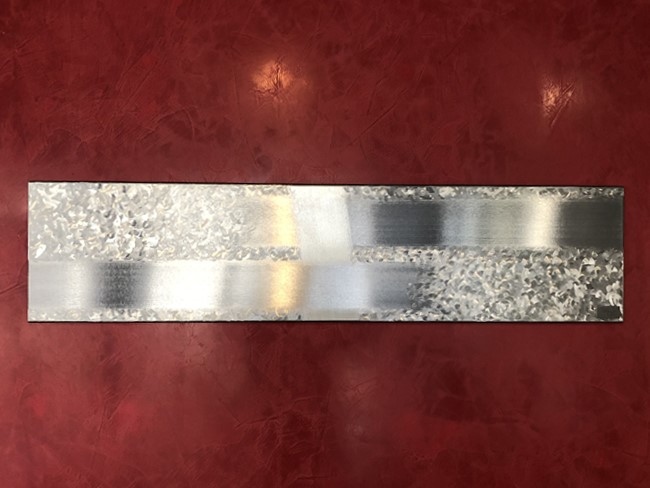 Oeuvre d'art en inox , ce tableau allie différents styles de meulage et de brossage pour lui donner une effet de profondeur qui fait de lui une illustration d'élégance moderne mettant en avant la qualité d'un travail artisanale.