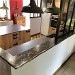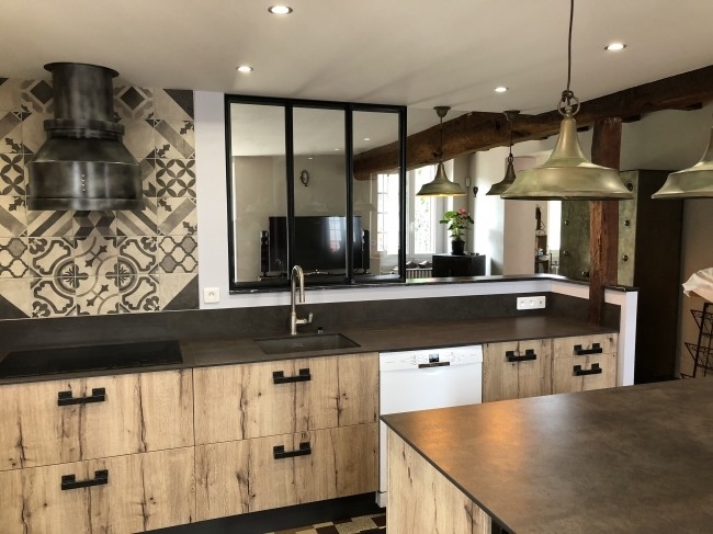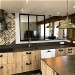 Verrières et comptoirs acier réalisées sur mesure pour une cuisine rénovée afin de donner et effet loft industriel.